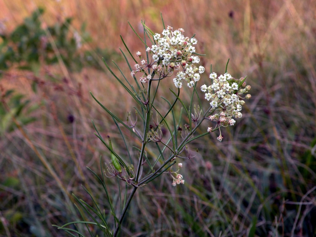Whorled milkweed has slender, delicate looking leaves that appear in whorls, giving this milkweed its name. It continues blooming relatively late into the fall compared to other milkweed species, making this an important food source for late migrating monarchs. It is drought tolerant and resistant to rabbits and deer. Like all milkweeds, it is the larval host for monarch butterflies, but the blooms are loved by all types of pollinators as well as hummingbirds.